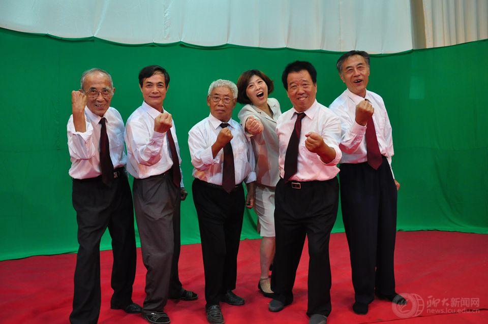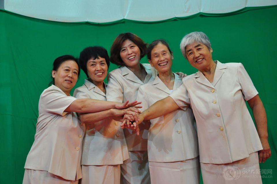 夕阳红艺术团的其他老教师们这个暑假无数次地冒着酷暑集合练习,经常一站就是一个多小时,但他们各个精神饱满,并纷纷表示乐意为校庆尽点力。排练期间,离退休处处长樊庆勋亲自到排练现场给老同志鼓劲打气,更增加了大家的斗志。社体部退休的孙霞老师家里既有生病的老人,又有需要照看的孙儿,每次出门儿都需要克服家庭的种种困难,但她每次排练都能准时到场,还积极为节目录制出谋划策;社体部退休的张华老师罹患严重眼疾,平时休息都感觉眼睛不舒服,排练时看到灯光更是不停眨眼,止不住地流眼泪,但她仍然坚持到为节目录完音才退下场来。还有张士恩、李庆朝、罗金泉、高先锋、李巧兰、商丽静、刘茂生、赵素俭等几位满头白发的老教师,都为录制这部创业史诗付出了辛勤劳动。