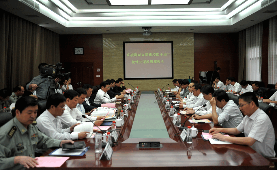 9月23日,庆祝聊城大学建校40周年校地共谋发展座谈会在我校第四会议室隆重召开。聊城市委副书记、市长王忠林,市政协主席金维民,市人大常委会第一副主任汪文耀,市委副书记陈平,市委常委、统战部长蔡同民、宣传部长赵庆忠、政法委书记刘强、秘书长李吉增、纪委书记张宝泉、组织部长杜昌伟、军分区政委宋铁平,我校领导李喆、徐传光、王强、孔祥华、张跃飞、孙兰雨、段培永、胡海泉出席会议。聊城市委、市政府主要部门负责人以及我校有关部门负责人等参加会议。会议由党委副书记、校长马春林主持。