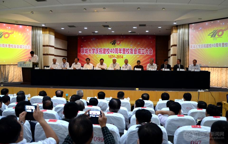 马春林在致辞中回忆和总结了学校40年的奋斗历程与办学成就,展望了学校的美好未来。他指出,“40年根植鲁西,薪火相传;40年滋兰树蕙,硕果满园。”回顾我校跨越发展的40年,既是一部奋斗史,又是一部改革史,更是一幅丰收画卷。今天的聊城大学,已成为山东省以及周边省市区高等教育重镇,校园环境美丽高雅,师生面貌昂扬向上,“学在聊大”美名传扬,被学界泰斗、曾任我校名誉校长的季羡林先生,赞誉为“鲁西最高学府,山东璀璨明珠”。“40年呕心沥血,孜孜不倦;40年厚德载物,英才辈出。”40年来,学校为社会培养输送了16万余名毕业生。正是众多校友带着“聊大人”特有的敦厚、敬业、奋进的特质,用自己的聪明才智回报社会,为母校赢得了声誉,增添了光彩。在庆祝建校40周年的喜庆日子里,聊城大学校友会的成立,标志着学校的校友联谊工作进入了新阶段。“40年戮力同心,攻坚克难;40年共谋发展,风雨如磐。”过去的40年,学校走过的每一段历程,跨越的每一步台阶,取得的每一项成就,广大校友、社会各界都给予了鼎力相助。我们还应铭记:那些为学校奠基而艰苦创业、负重前行的先辈们,那些为学校发展而兢兢业业、废寝忘食的教师们,那些为母校锻造了“学在聊大、奠基人生”美名的学子们,是他们用自己的双手托起了聊城大学的今天!站在新的起点,聊城大学将努力创建特色鲜明、优势突出的国内一流地方综合性大学,成为服务引领鲁西地区、辐射晋冀鲁豫经济社会文化科技发展的“高素质应用型人才摇篮”“经济社会科技创新中心”和“社会文化引领的灯塔”。